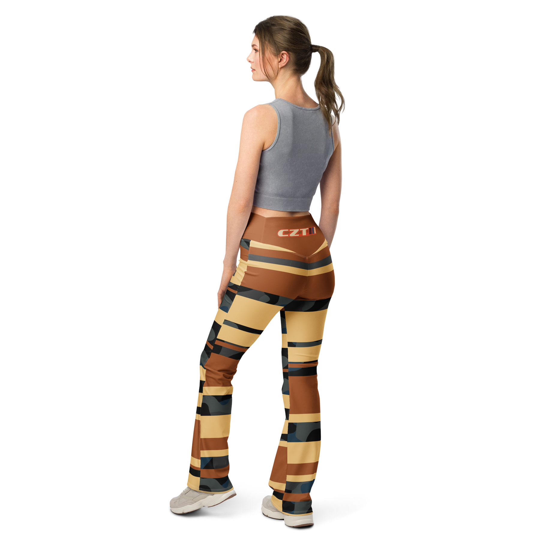 CZT Botanic Camo Striped Flared Bottom Leggings