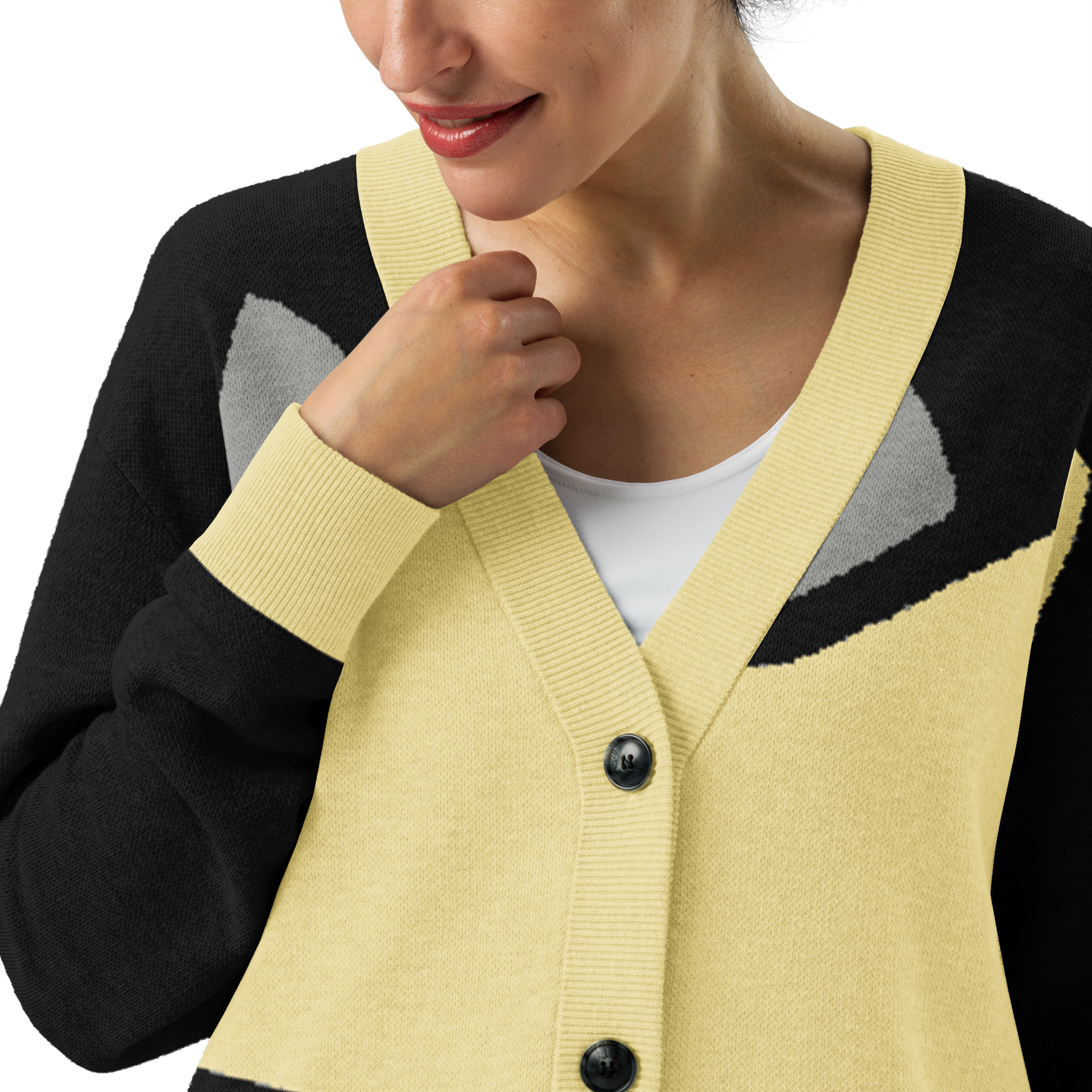 • The cardigan may shrink slightly after the first wash.
