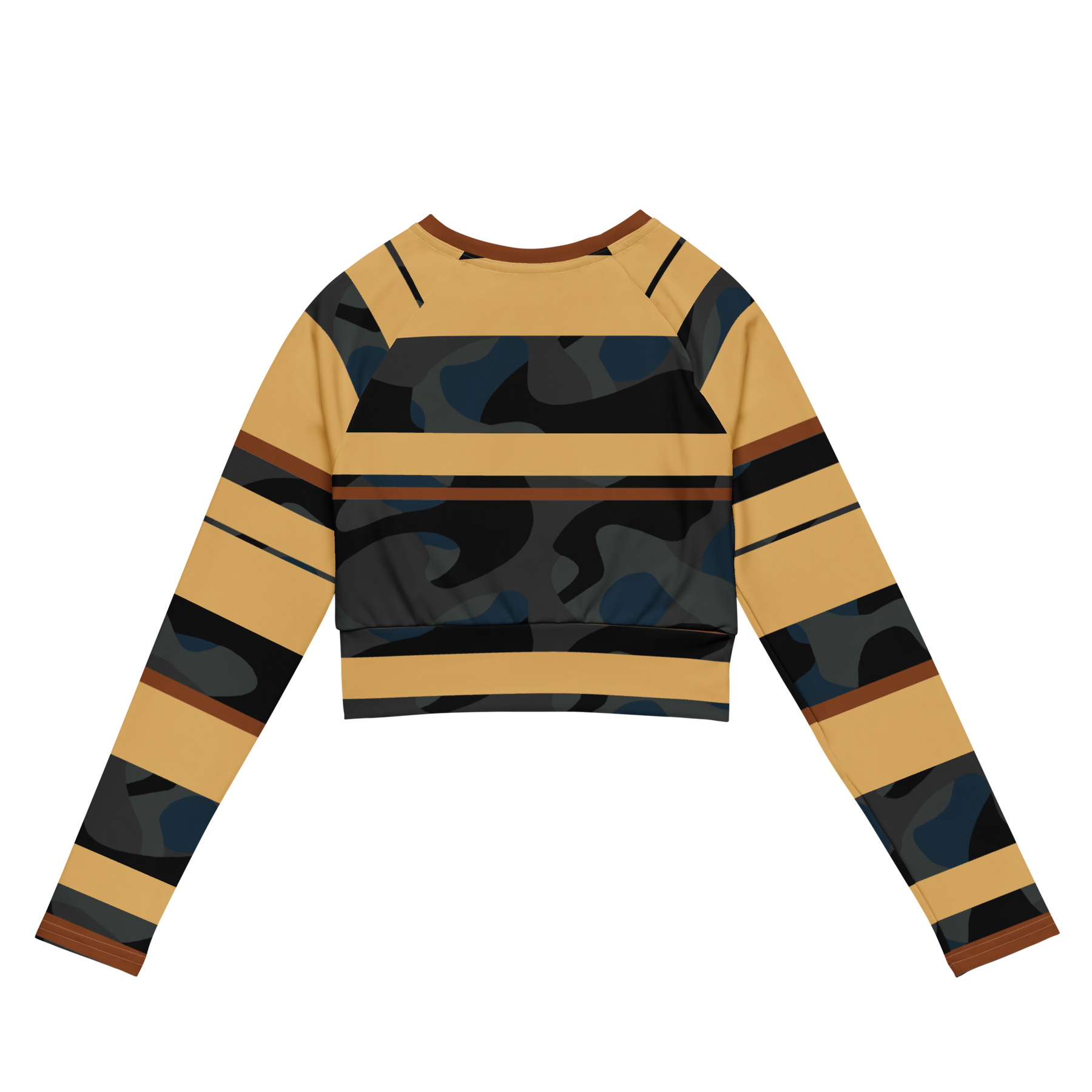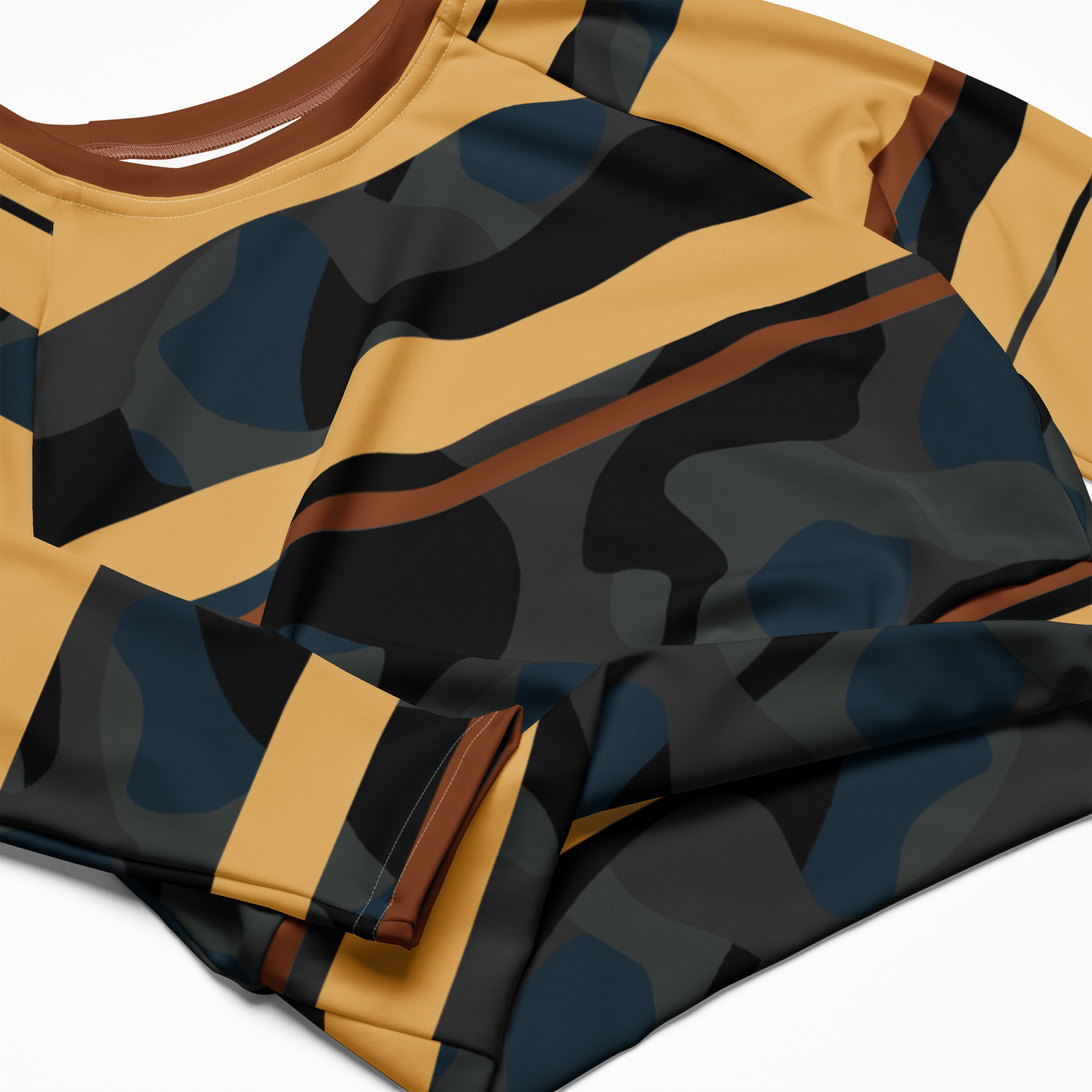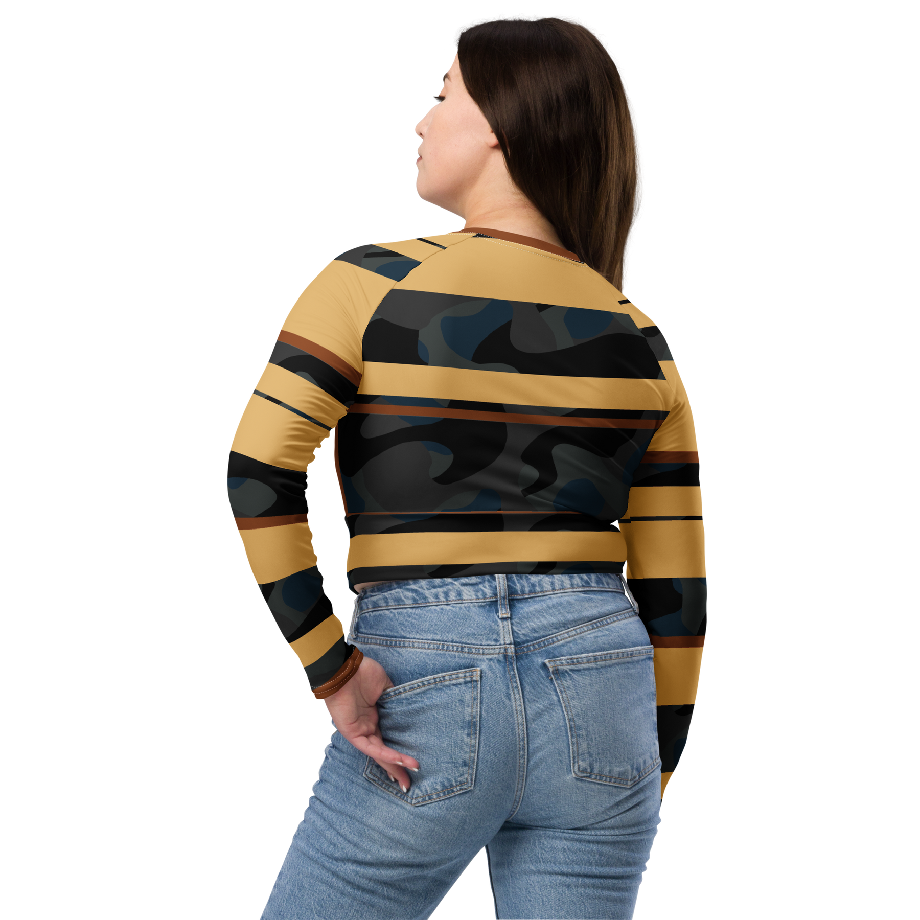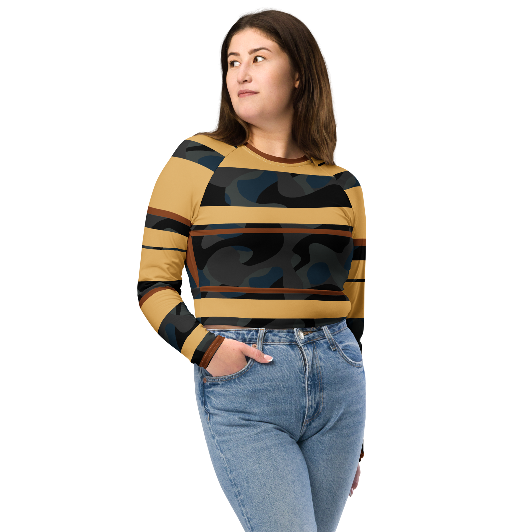 CZT Botanic Camo Long-Sleeve Multi-Striped Crew Neck Crop Top Sweatshirt (Recycled)