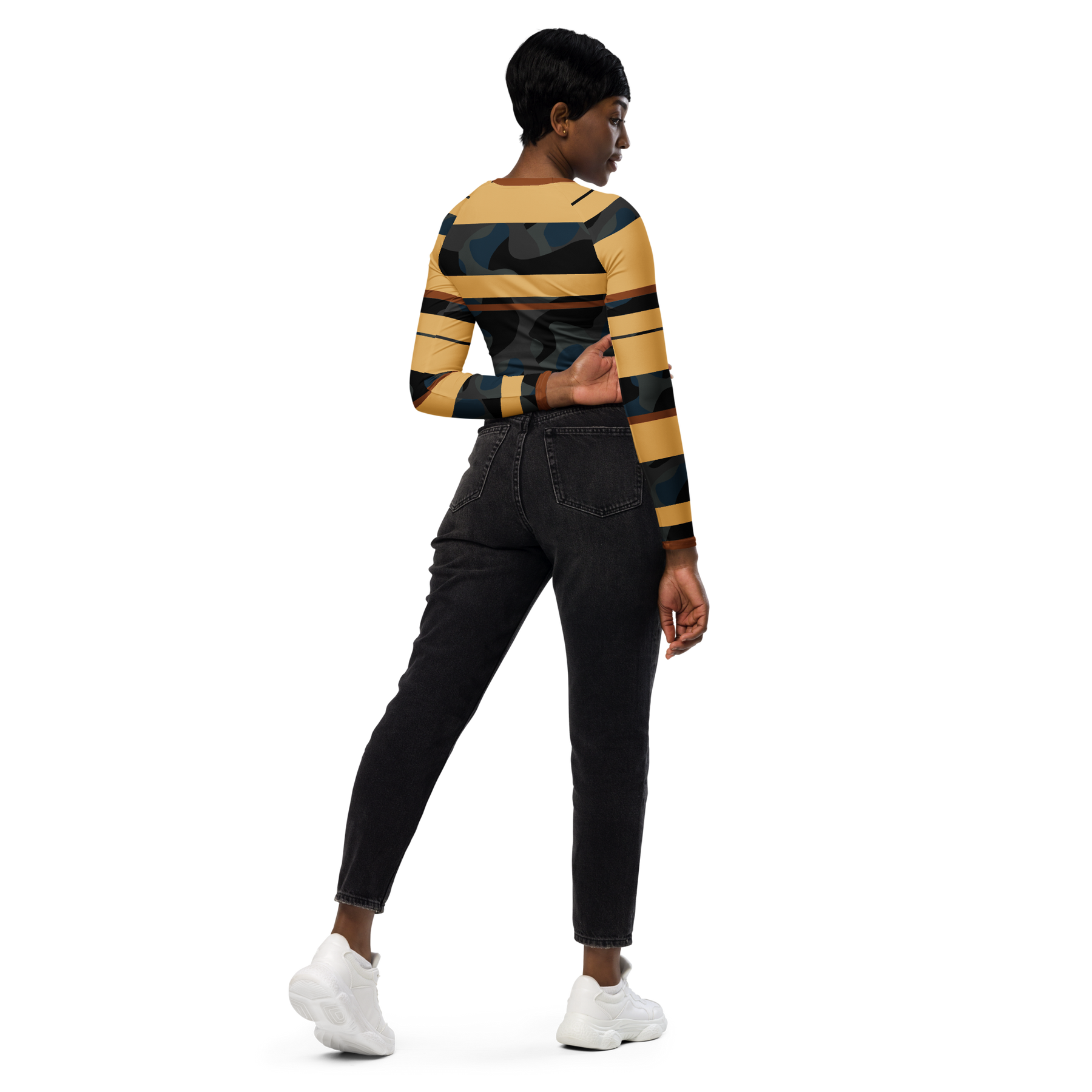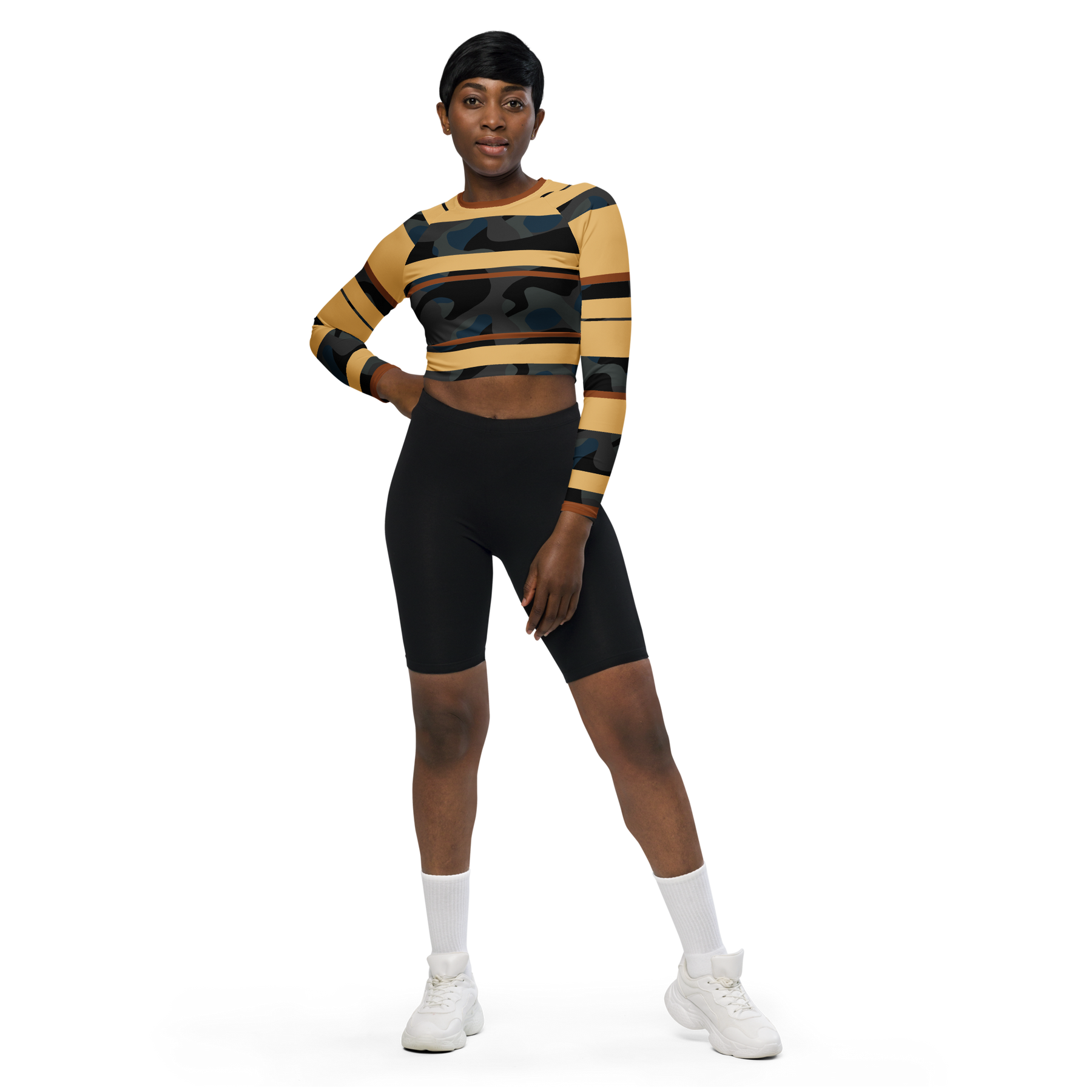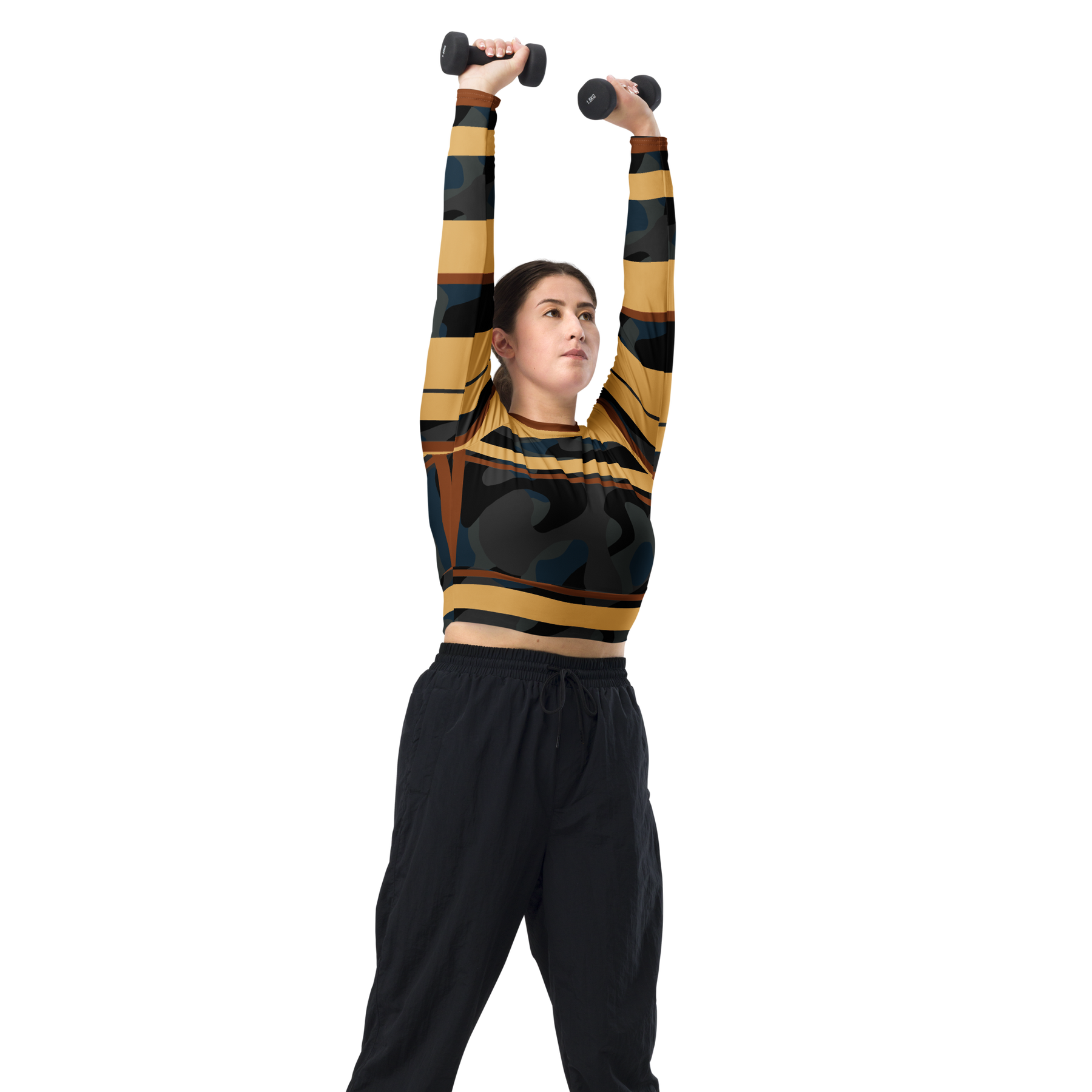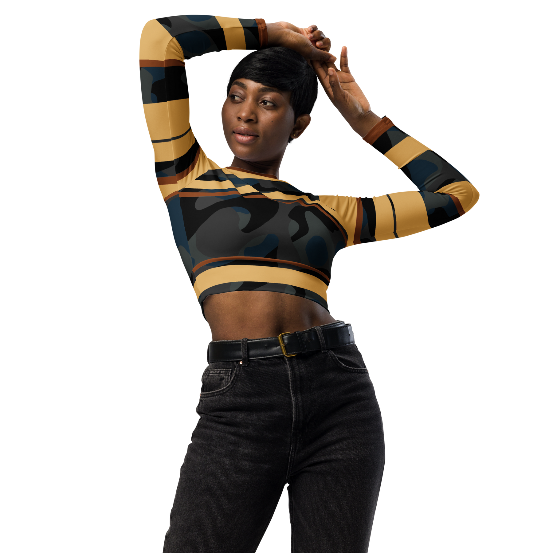 CZT Botanic Camo Long-Sleeve Multi-Striped Crew Neck Crop Top Sweatshirt (Recycled)