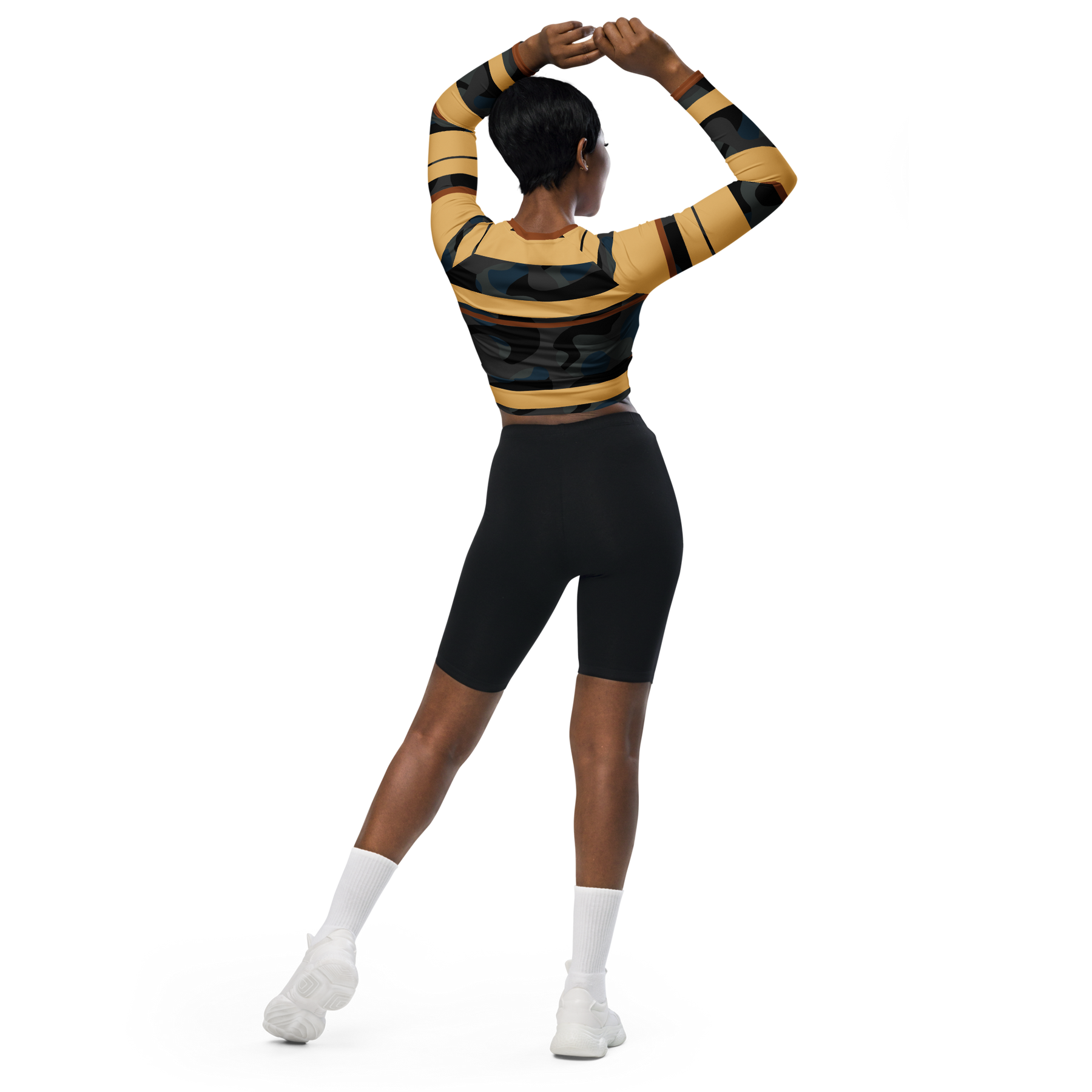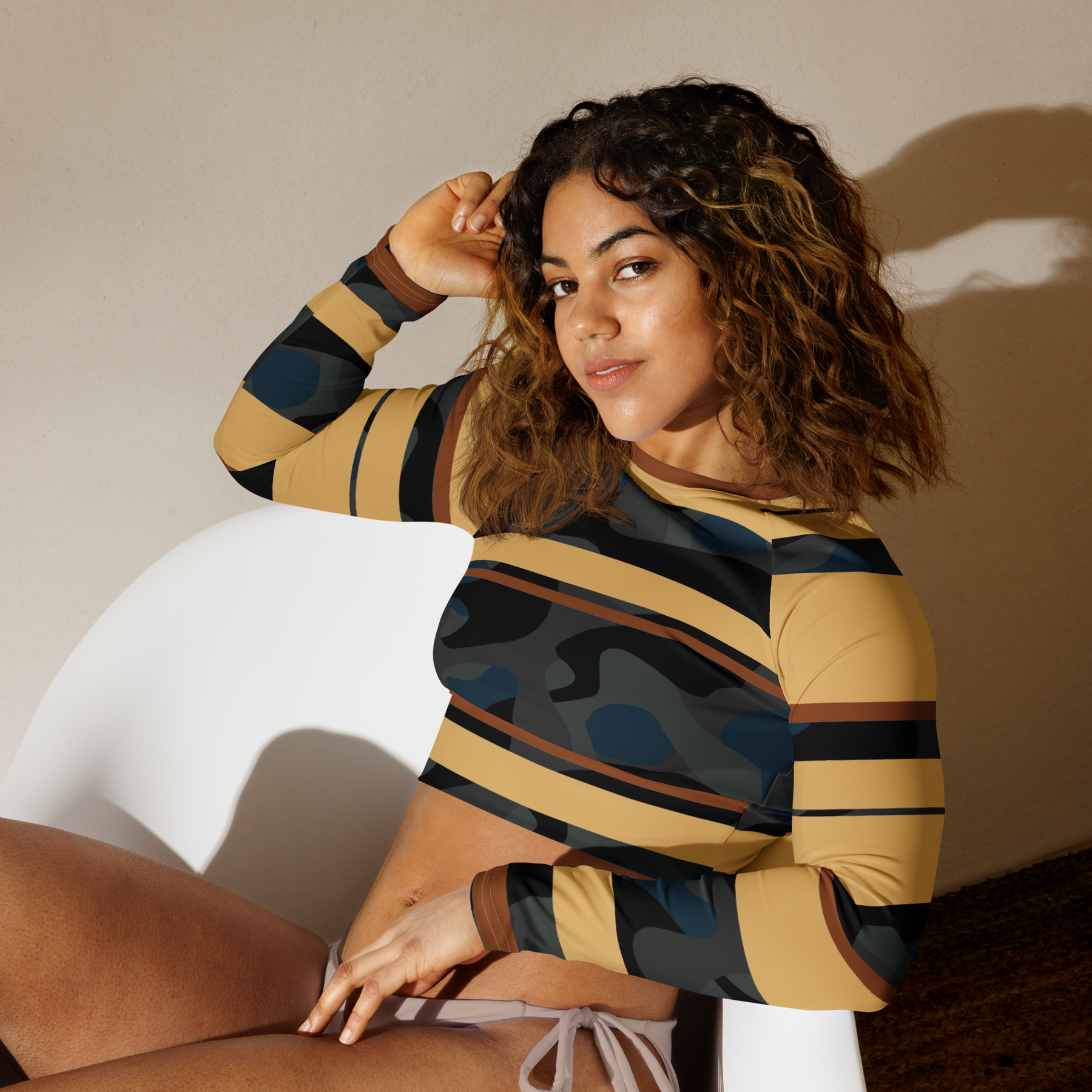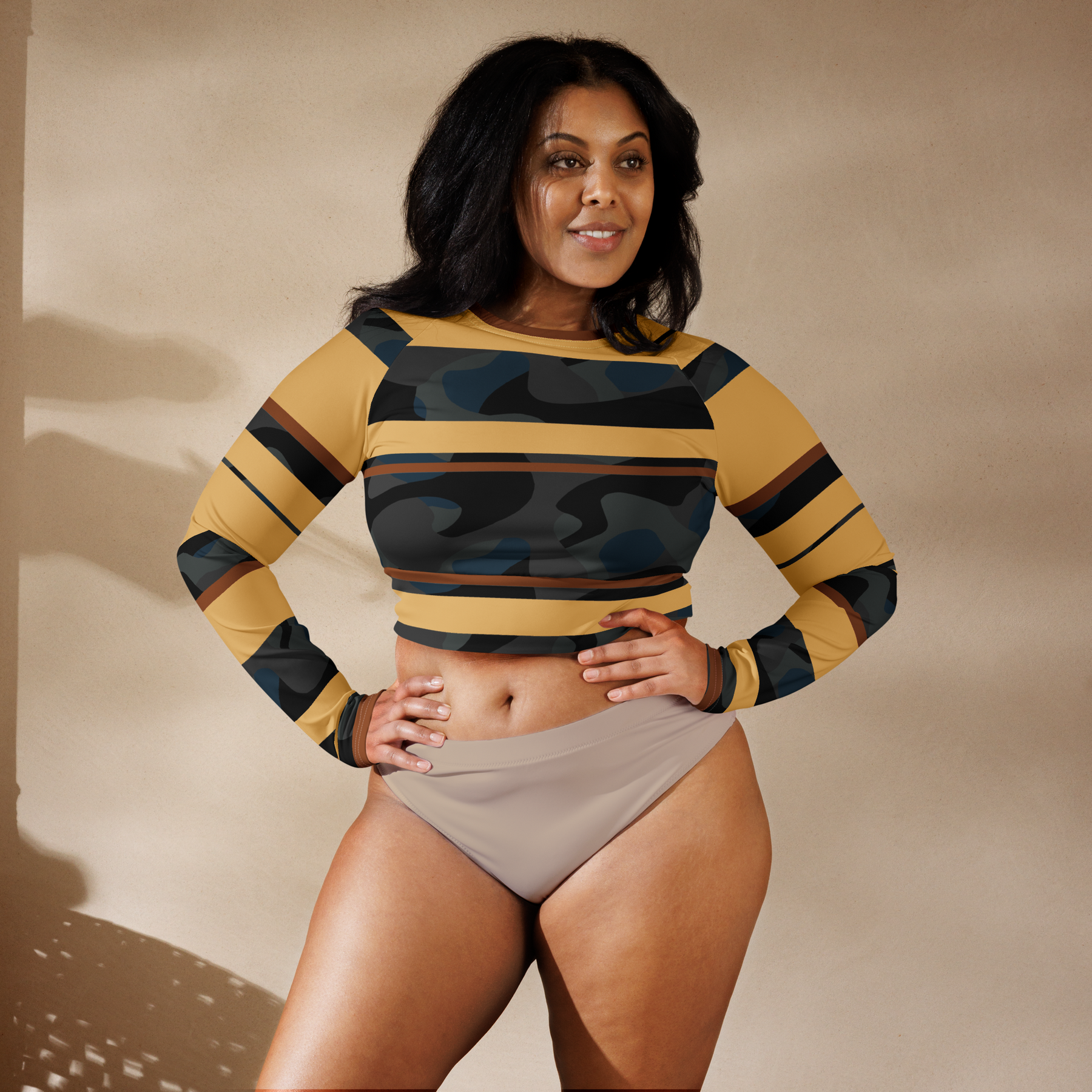 The CZT Botanic Camo Long-Sleeve Crew Neck Crop Top Sweatshirt channels eco-conscious edge through recycled polyester and elastane construction, while the reinforced double-layered waistband provides unwavering support. Built for those who demand performance without compromise—whether you're conquering the pool, dominating your workout, or elevating athleisure to an art form.  Sustainable raglan style that refuses to play it safe.