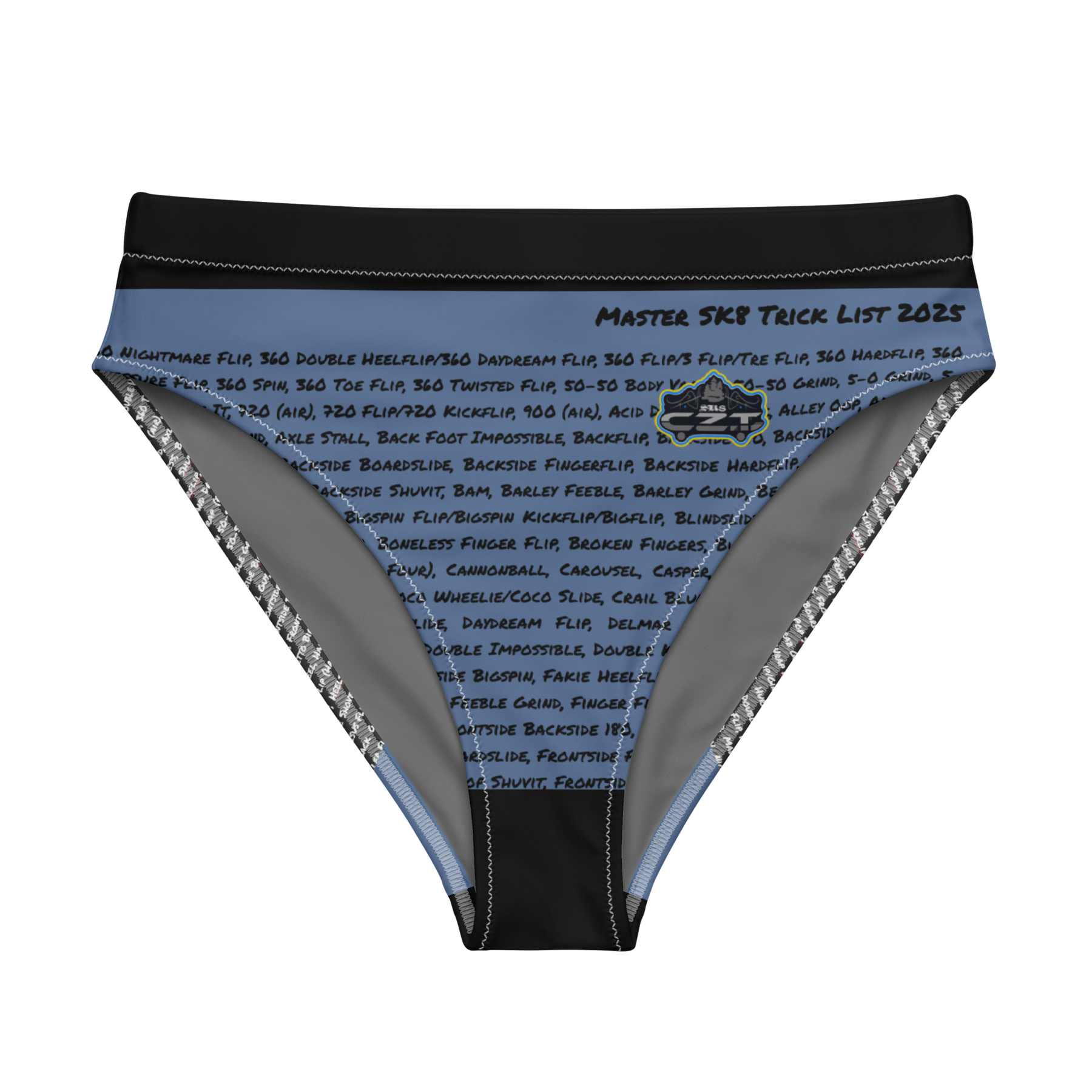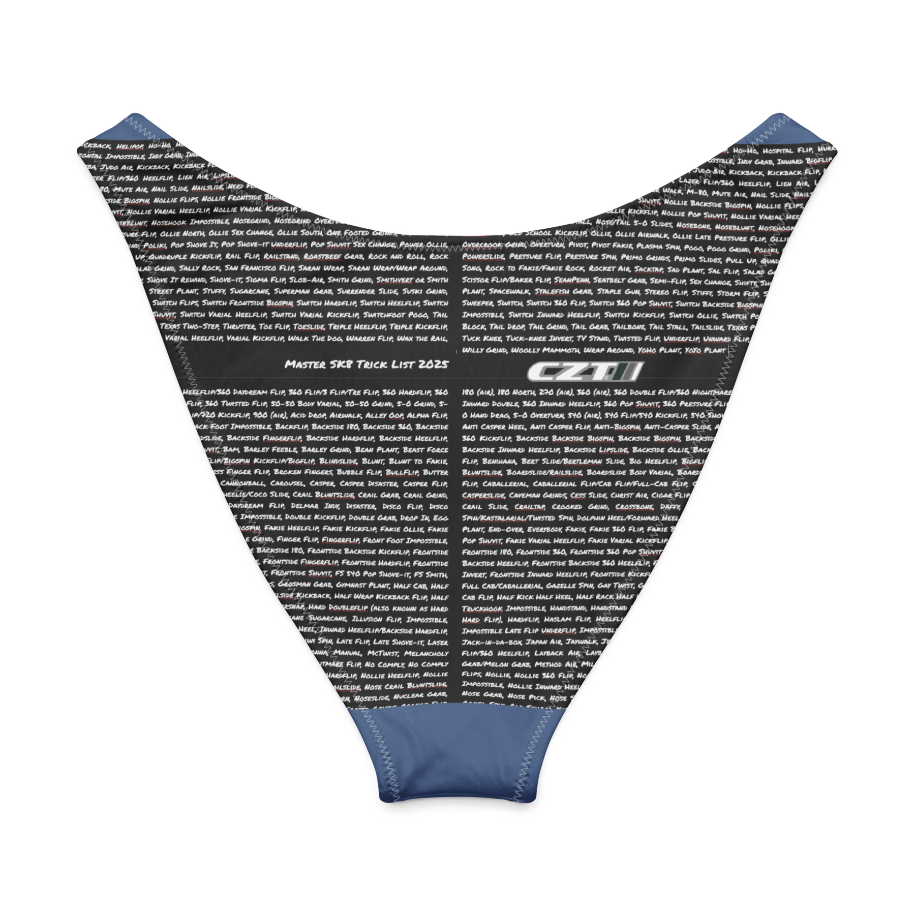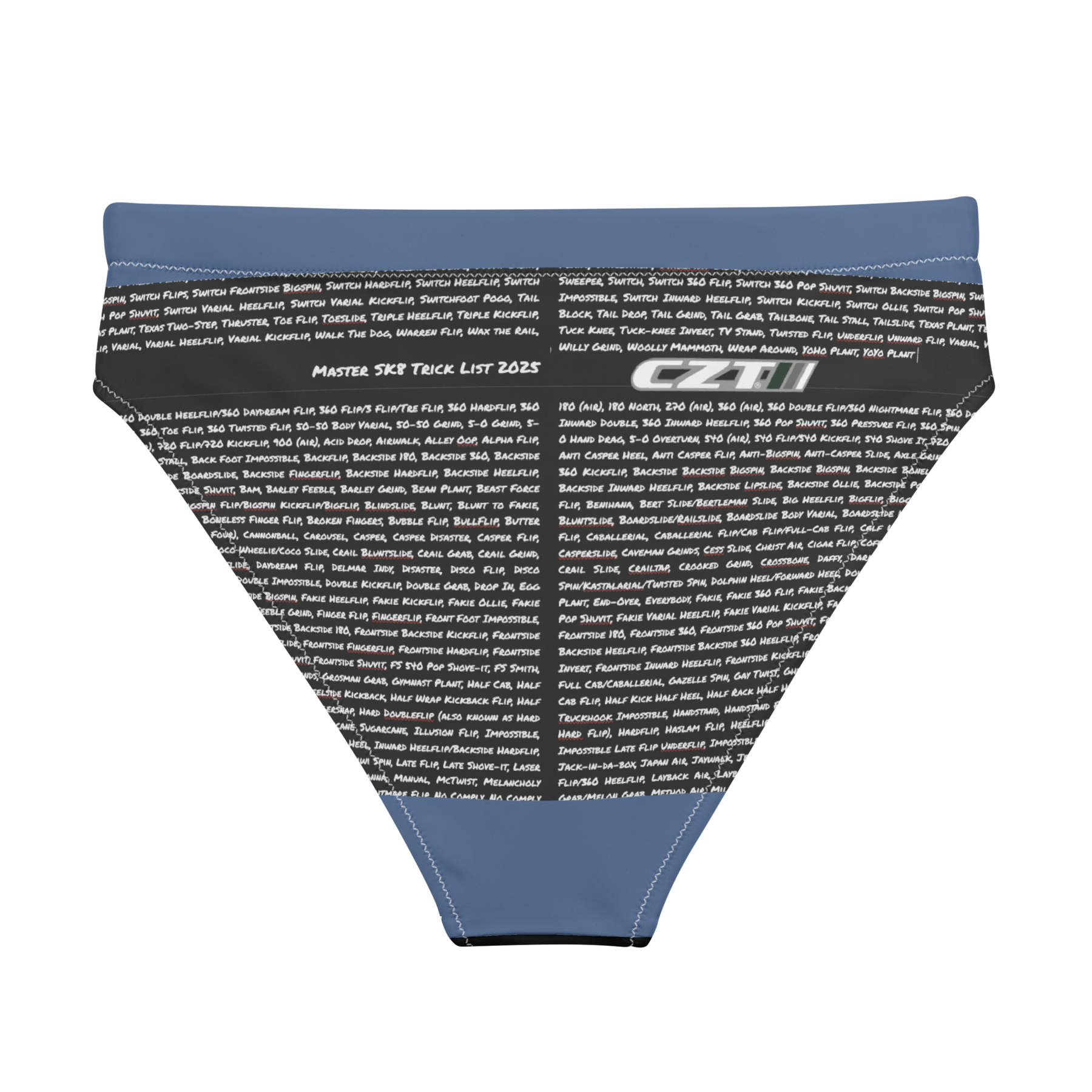 Elevate your beach game with these CZT Full SK8 Trick List Bikini Bottoms (V-cut, High-waisted, String). Don't settle for average, these bottoms come in V-cut, High-waisted, and String cuts to embrace your daring spirit. The double-layered, soft fabric will keep you comfortable while the UPF 50+ protection shields you from the sun's rays. Get ready to slay in style and confidence with these must-have bottoms.